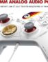 Features 8-gate analog stick, 6-button Microswitch button layout, programable rear buttons, analog slider pad for in game lobby navigation, and tactile switch shoulder buttons